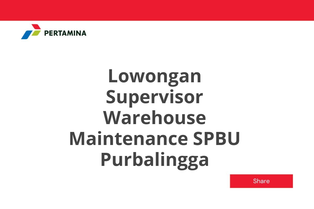 Saat ini, PT. Pertamina Retail sedang membuka lowongan kerja untuk posisi Supervisor Warehouse Maintenance di salah satu SPBU mereka yang berlokasi di Purbalingga, Jawa Tengah.